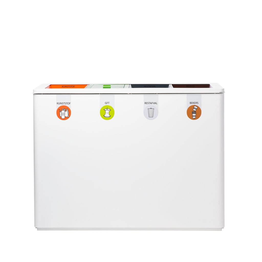 De Amega is gemaakt van hoogwaardig staal en verkrijgbaar in een L en XL uitvoering. Tevens is dit inzamelmiddel volledig futureproof door de mogelijkheid om alles achteraf aan te passen. Dat maakt dit afvalsysteem gelijk ergonomisch. De deksel van de Amega L en XL zijn voorzien van gasveren waardoor deze geluidloos dichtvalt. Dit systeem kan gebruikt worden voor 3 – 5 afvalstromen.